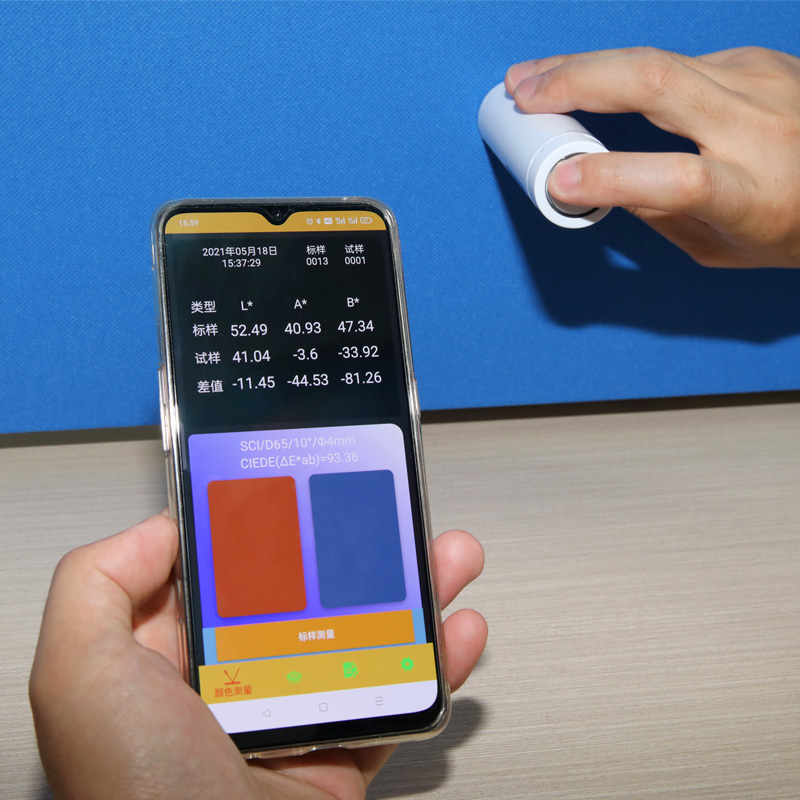 用于塑膠電子、油漆涂料、紡織服裝印染、陶瓷等行業色差品質管控; 體積小巧、攜帶方便,通過手機APP查找色卡,進行多種功能擴展 |