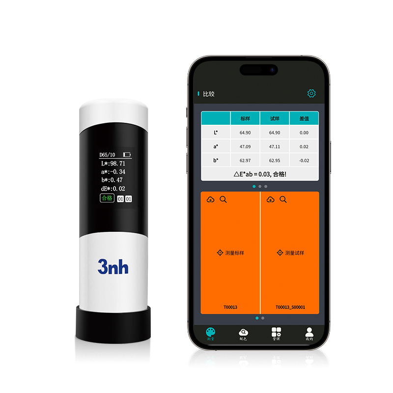 用于塑膠電子、油漆涂料、紡織服裝印染、陶瓷等行業色差品質管控。 體積小巧、攜帶方便。通過手機APP查找色卡,進行多種功能擴展 |